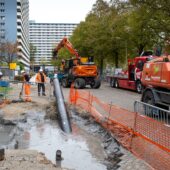 In Delft is woensdagochtend een 180 meter lange warmteleiding door elf hijskranen onder de grond gebracht. Het is een van de weinige grote nieuwe warmtenetten waar nog aan wordt gebouwd – door een publieke partij. “Zonder subsidie is dit niet mogelijk.”