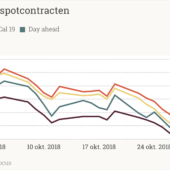 Op de korte termijn speelt de zachte nazomer de belangrijkste rol in de prijsvorming, net als de fors blazende wind. Dat het half oktober terrasweer is, drukt de spotprijs fors, en ook het novembercontract daalde. De instortende spotprijs gold daarmee als signaal voor de termijnprijzen om te volgen,
