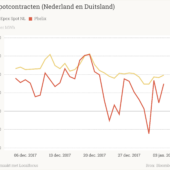 Energeia’s stemming behandelt achtereenvolgens de prijsontwikkeling op de markten voor olie, steenkool, CO2-emissierechten, aardgas en elektriciteit. Beweeg met de muis over onderstaande interactieve figuren voor prijsinformatie.
