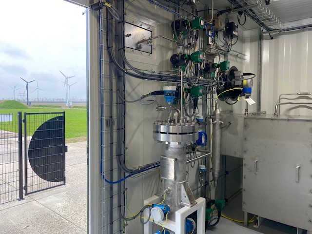 Een elektrolyser op het fieldlab van Switch waar TNO en Wageningen University & Research/ACCRES samen onderzoek doen. (Foto: Energeia)