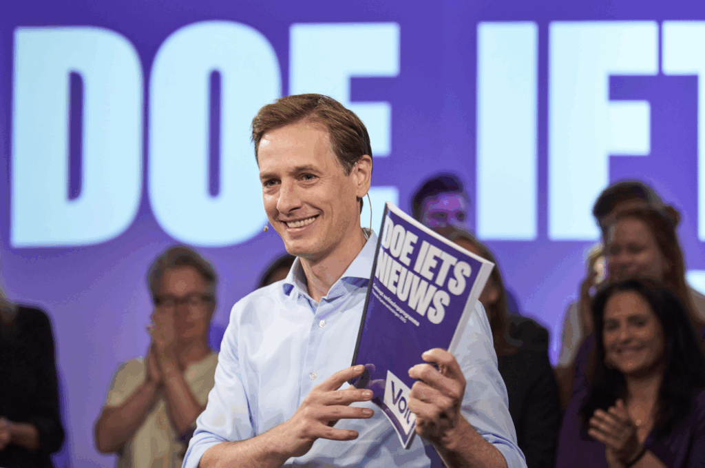 Volt-lijsttrekker Laurens Dassen presenteert deze dinsdag het verkiezingsprogramma ‘Doe iets nieuws’ in perscentrum Nieuwspoort. (Foto: Phil Nijhuis/ANP)