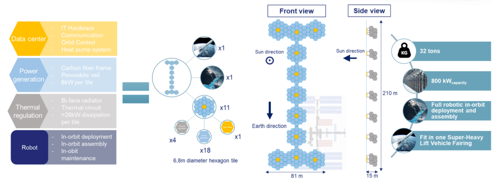 De techniek voor de ruimtedatacenters zelf bestaat in feite al. De IT-hardware is in principe gelijk aan die van datacenters op aarde. Het enige verschil is dat de module hermetisch afgesloten moet zijn. De energievoorziening werkt op zonnepanelen, die robots op grote hoogte verder aan elkaar koppelen. Deze panelen zijn vergelijkbaar met waar het internationale ruimtestation ISS zijn elektriciteit vandaan haalt.